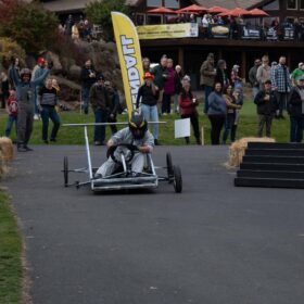 Kendall Auto hosted their 2nd annual Soapbox Derby at the River’s Edge Golf Course. 14 teams participated and showcased their creative designs, fun engineering, and team spirit in the form of handcrafted soapbox cars. Each car is handcrafted, custom designed, and thoughtfully engineered then placed on display for the community to admire, take pictures with, and vote for “Favorite Car.” Following the pre-show, it was time to race; down the twisted course testing both drivers and cars.